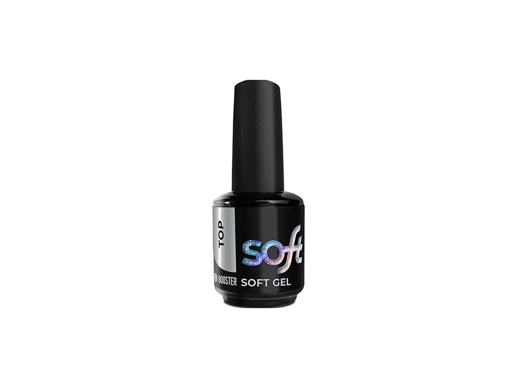 Platinum BOOSTER New Soft Gel - Top je vrchní vrstva na kaučukové bázi, která kombinuje vysokou pružnost, samovyrovnávací schopnost a maximálně komfortní aplikaci. Díky středně husté konzistenci se snadno nanáší, nestéká a vytváří dokonale hladký povrch.