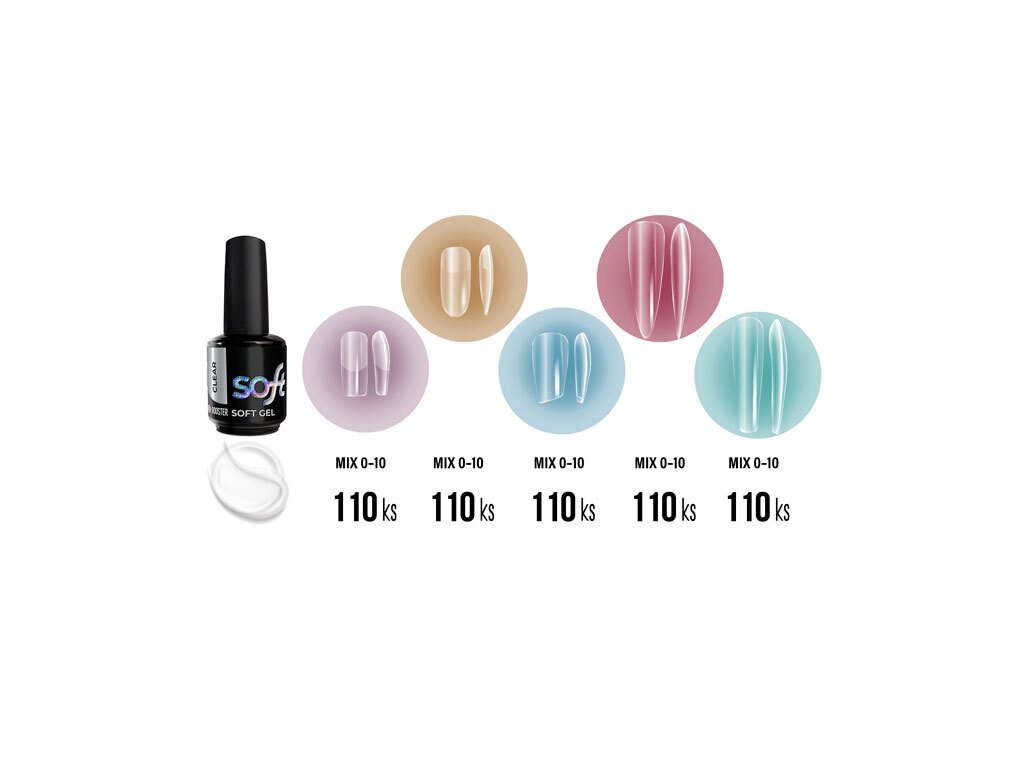 Od značky Platinum přichází speciální sada SOFT GEL Tipů, které přilnou k nehtu a dodají mu žádaný tvar během pár vteřin. Široká nabídka tvarů, délek i velikostí zaručí, že si vybere opravdu každý. Patří k nim pak i čirý BOOSTER Soft Gel pro práci s nimi.