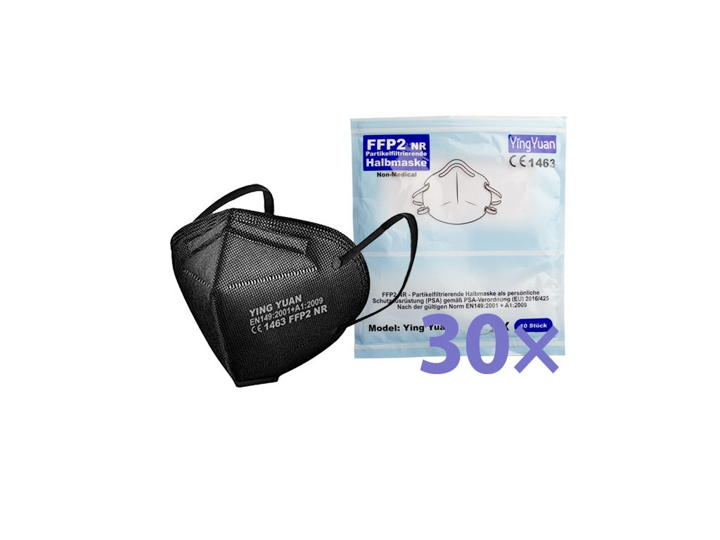 Sada 30 ks černých respirátorů FFP2 nabízí spolehlivou ochranu s filtrační účinností ≥ 95 %.